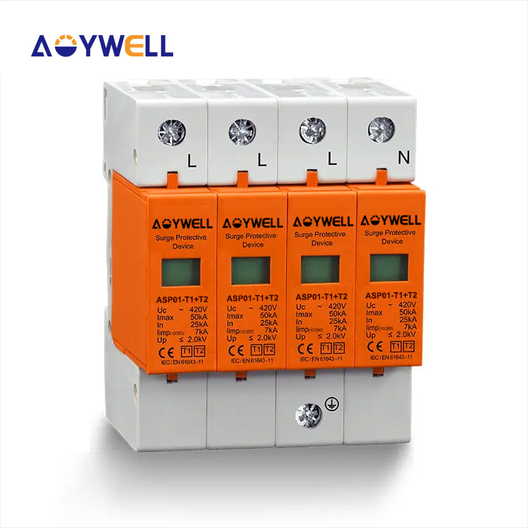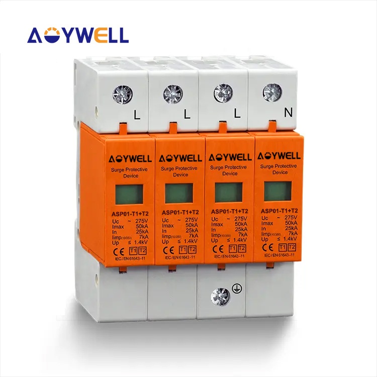 AOYWELL ASP01-T1+T2 B+C 4P AC 275V 385V 420V 7KA 12-5KA 25KA 50KA Surge protector