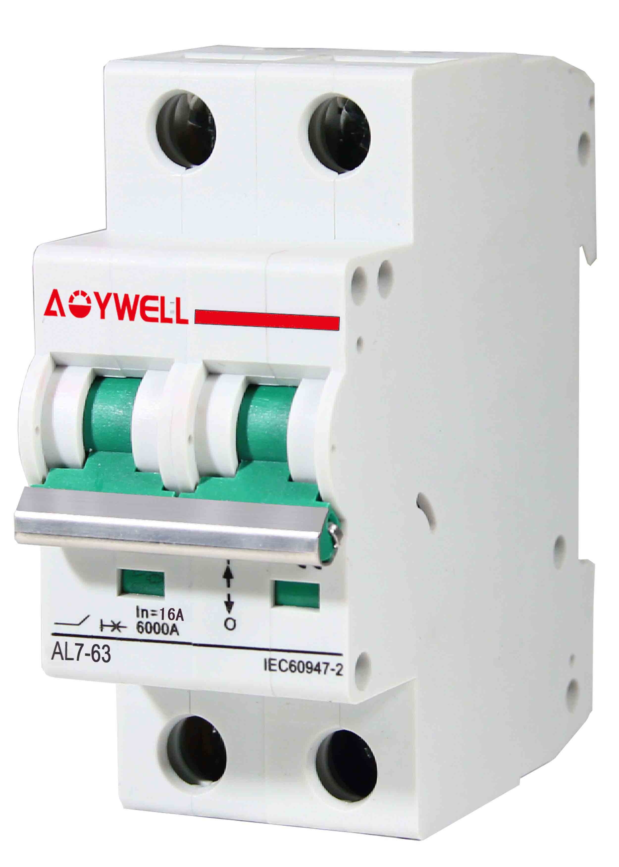 The rated working voltage of AL7-63 small DC circuit breaker can be as high as DC 1200V. The circuit breaker adopts a special arc extinguishing and current limiting system, which can quickly disconnect the fault current of the DC power distribution system and protect the important components in the solar power generation system— Photovoltaic modules are protected from high DC reverse current and AC feedback current caused by inverter failure, ensuring reliable operation of solar photovoltaic power generation systems.