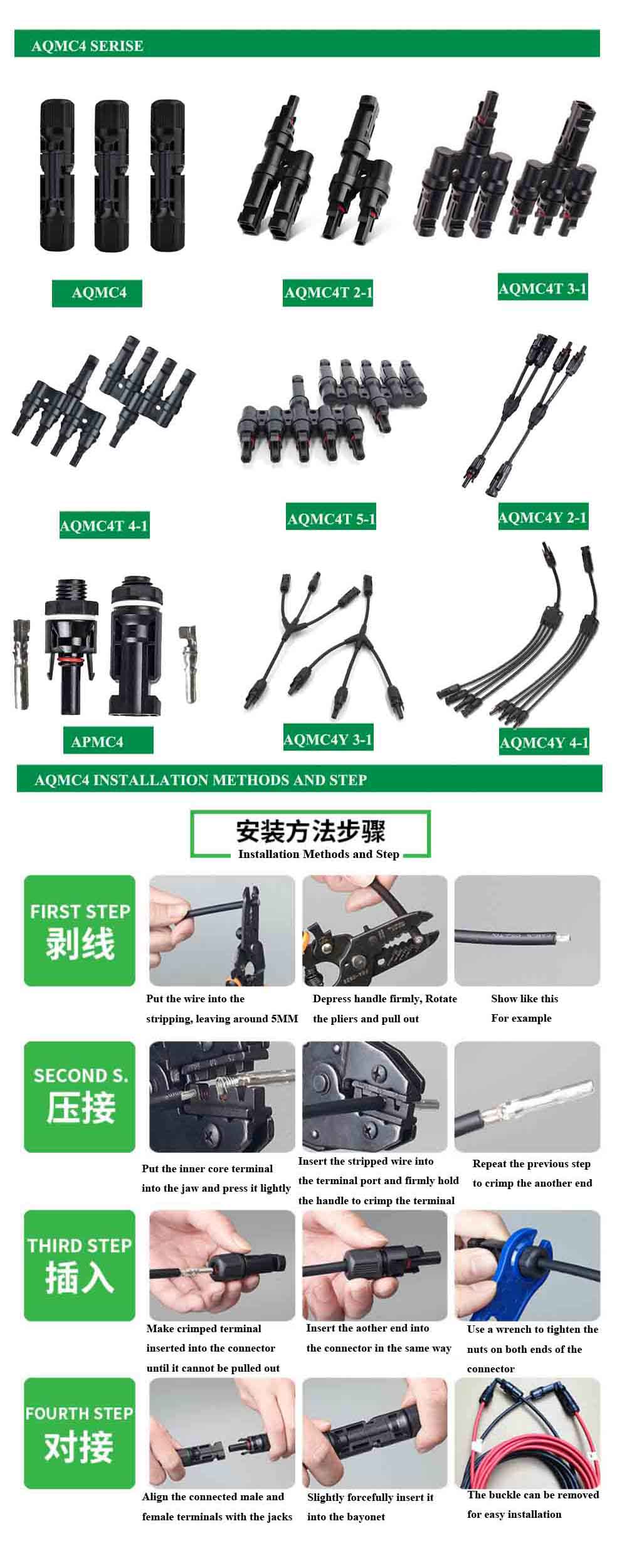 With the rapid development of distributed photovoltaic market, especially household photovoltaic market, the quality problem of the system is becoming more and more prominent. The fire of photovoltaic system not only has a negative impact on the industry, but also involves life safety. According to the investigation report, the mutual insertion of connectors and the non-standard installation of connectors ranked first and third in the cause of fire. AOYWELL photovoltaic connector. It can well solve the crimping problem between cable and connector metal core.