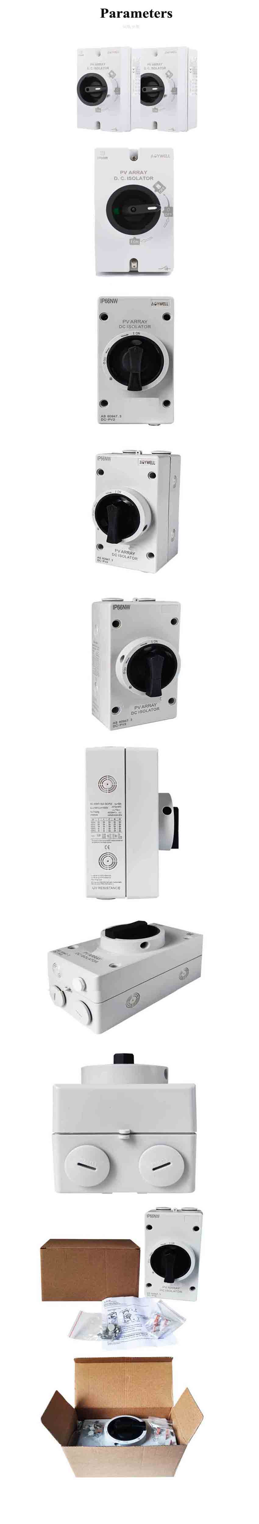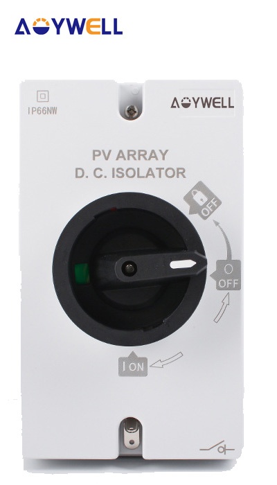 AWIS-40 IP66 Enclosed 1000V 32A DC Disconnect Switch is specially developed for solar installations. Put it between the roof and solar panels and solar inverter. Used to isolate PV arrays during system installation or any maintenance.